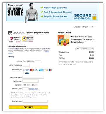 Clickbank is the largest and most trusted retail outlet online. Clickbank processes over 30,000 online payments a day through their secure servers and they have the most advanced security measures for order processing. Immediately after your order is processed you will be redirected to the Wild Diet System Interactive website for immediate access to the cookbook, recipes and bonuses.